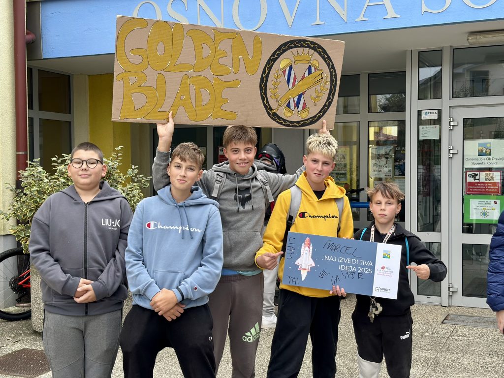 Na taboru smo podelili tudi 3 nagrade. Nagrado za NAJ IZVEDLJIVO IDEJO so prejeli Gašper, Liam, Marcel, Val in Tai, ki so oblikovali idejo o frizerskem salonu Golden Blade.
