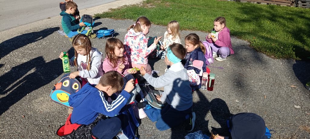 sprehodu smo prispeli do manjše jase, kjer smo si privoščili zasluženo malico iz nahrbtnikov. V