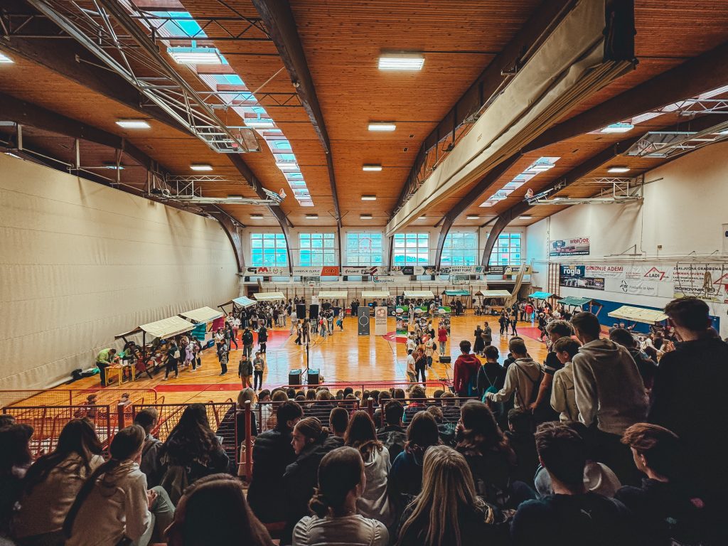 Po jutranjem zboru v matičnih razredih in razdelitvi zapestnic, ki so s svojimi barvami označevale poklice, smo se učenci v spremstvu razrednikov in učiteljev odpravili proti konjiški športni dvorani. Tam so na nas že čakale stojnice, na katerih so se predstavljali posamezni poklici. Imeli smo dovolj časa, da smo si slednje podrobno ogledali in celo preizkusili, kar je bilo na njih ponujeno.
