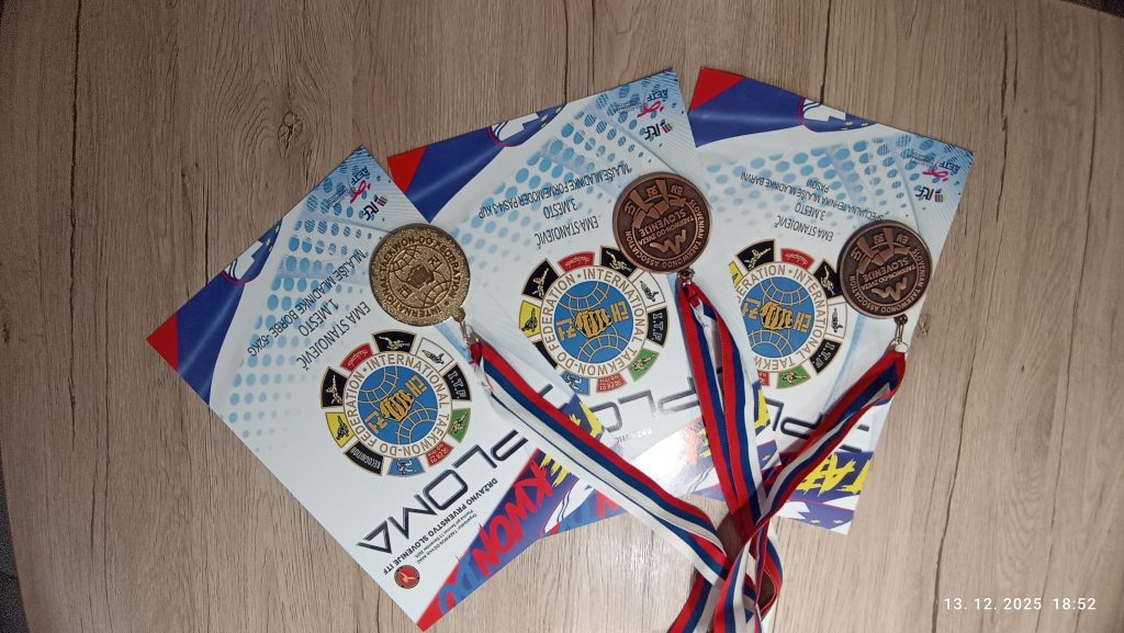V soboto, 13. 12. 2025, je potekalo državno prvenstvo v Taekwondo-ju na Planini pri Sevnici. Slednjega se je udeležila tudi učenka 8. b-razreda, Ema Stanojević. Ema je bila na tekmovanju zelo uspešna, saj si je prislužila 2 bronasti medalji – eno v formah in eno v specialni tehniki – ter zlato medaljo v borbah, kar pomeni, da je postala DRŽAVNA PRVAKINJA V SVOJI KATEGORIJI.