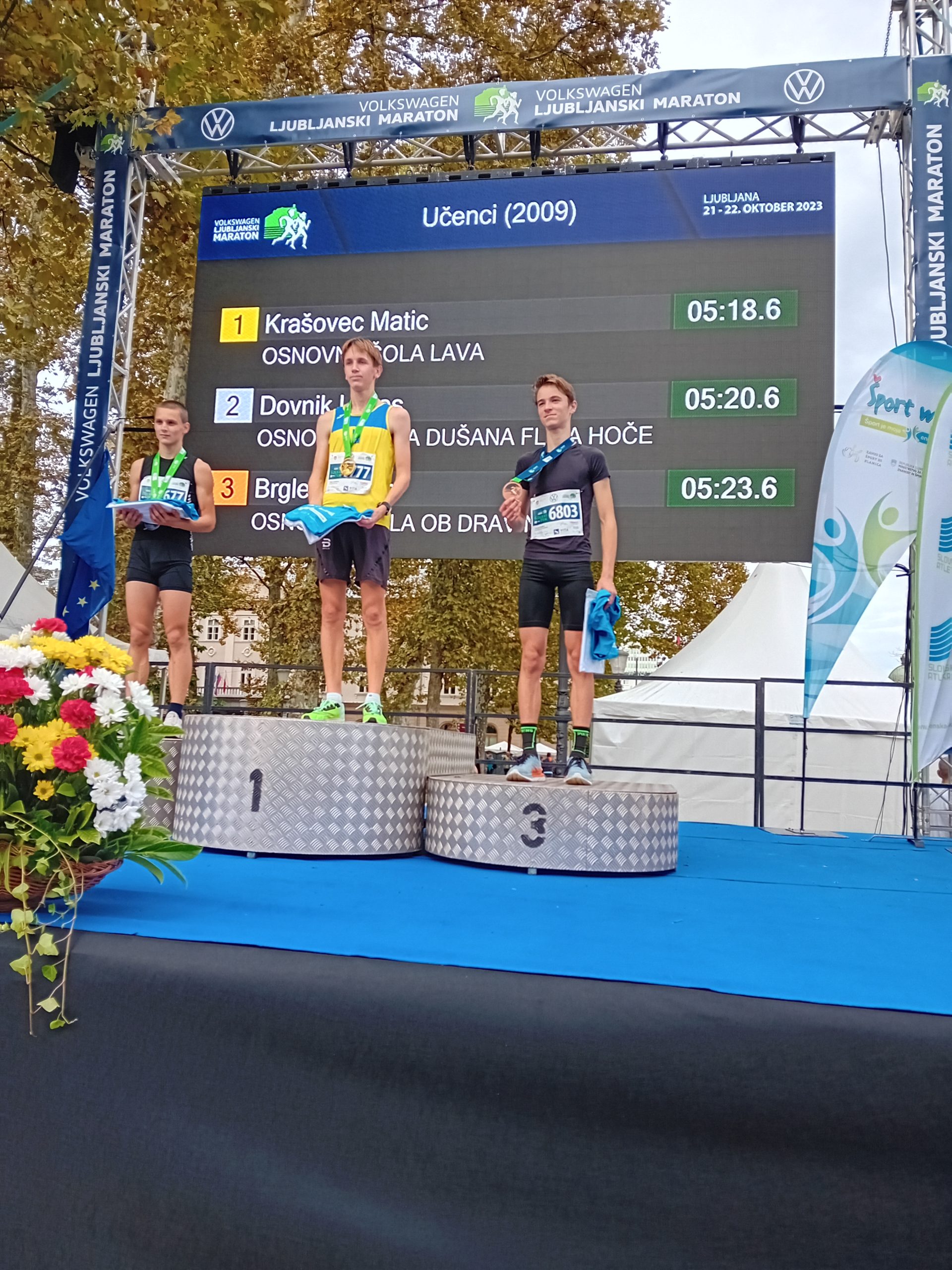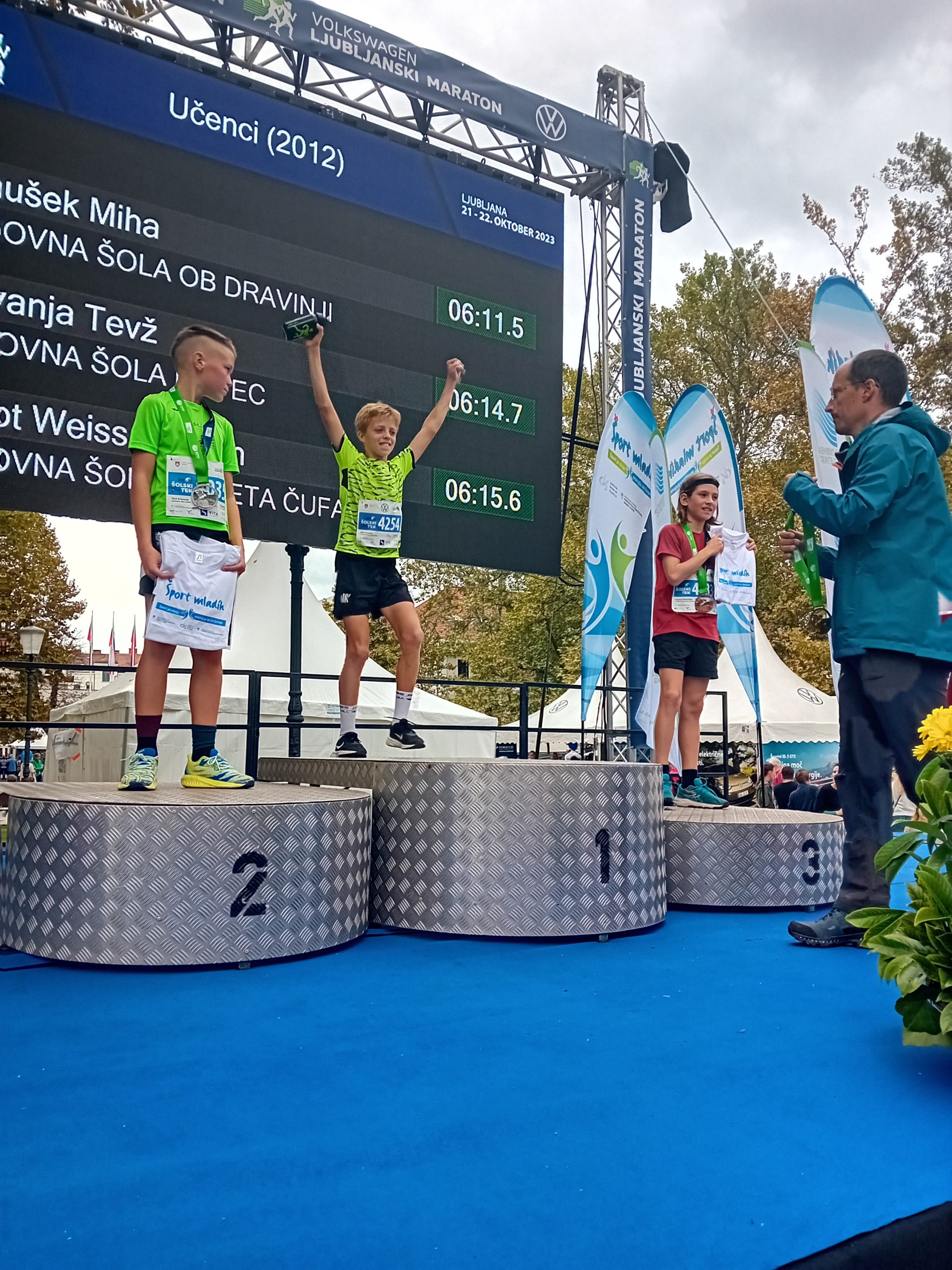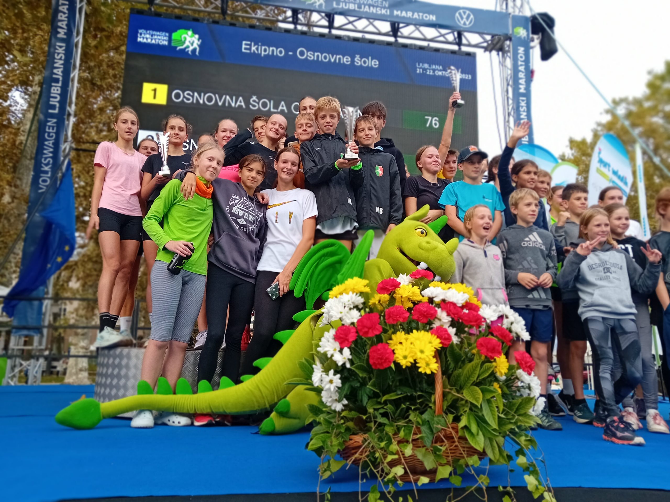 V soboto, 21. 10. 2023 so učenke in učenci naše šole že enajstič zapored nastopili na Državnem osnovnošolskem prvenstvu v uličnem teku, ki je bilo organizirano v sklopu 27. LJUBLJANSKEGA MARATONA. V vseh letih doslej so posegali po najvišji mestih tako ekipno kot tudi posamezno, lansko leto pa prvič v ekipni razvrstitvi postali tudi državni prvaki. Braniti naslov državnih prvakov je velika odgovornost, zato je bila želja za dober nastop na letošnjem tekmovanju še toliko večja. Z željo po uspehu, dobro pripravljenostjo, požrtvovalnostjo in veliko mero vztrajnosti pa jim je uspelo naslov DRŽAVNIH PRVAKOV celo z veliko prednostjo ubraniti. Drugo uvrščena OŠ Idrija je namreč zaostala s kar 24 točkami, tretja pa je bila OŠ Žiri.
