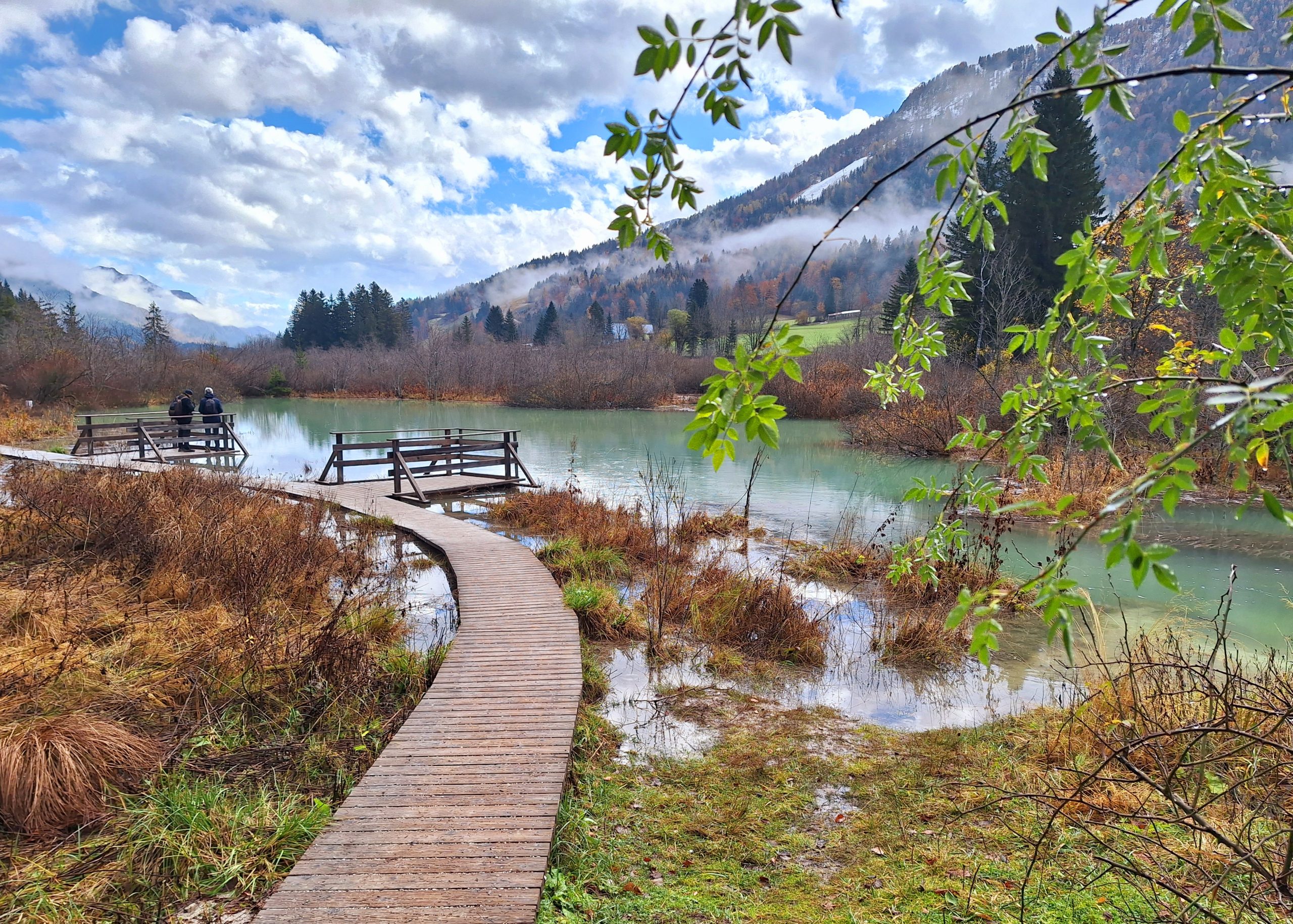 S soncem obsijani dan je minil v zanimivem in prijetnem vzdušju. Skupinsko delo nas je povezalo in utrdilo prijateljske vezi. Daljši dopoldanski sprehod nas je popeljev do naravnega rezervata Zelenci. Ogledali smo si gorsko mokrišče okoli jezera s turkizno vodo, ki ga napaja izvir, s sprehajališči, z redkimi rastlinami in močvirskimi pticami.