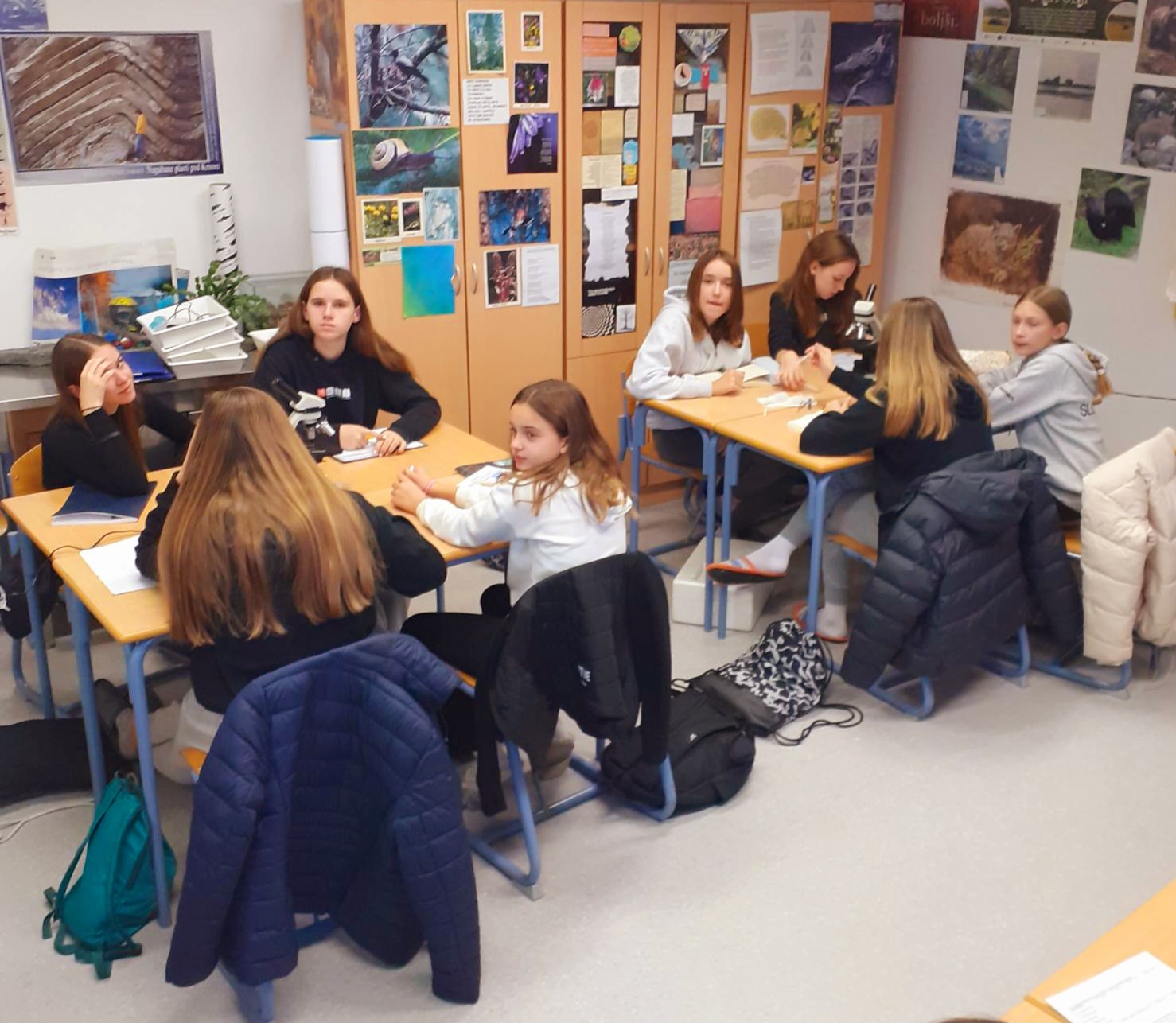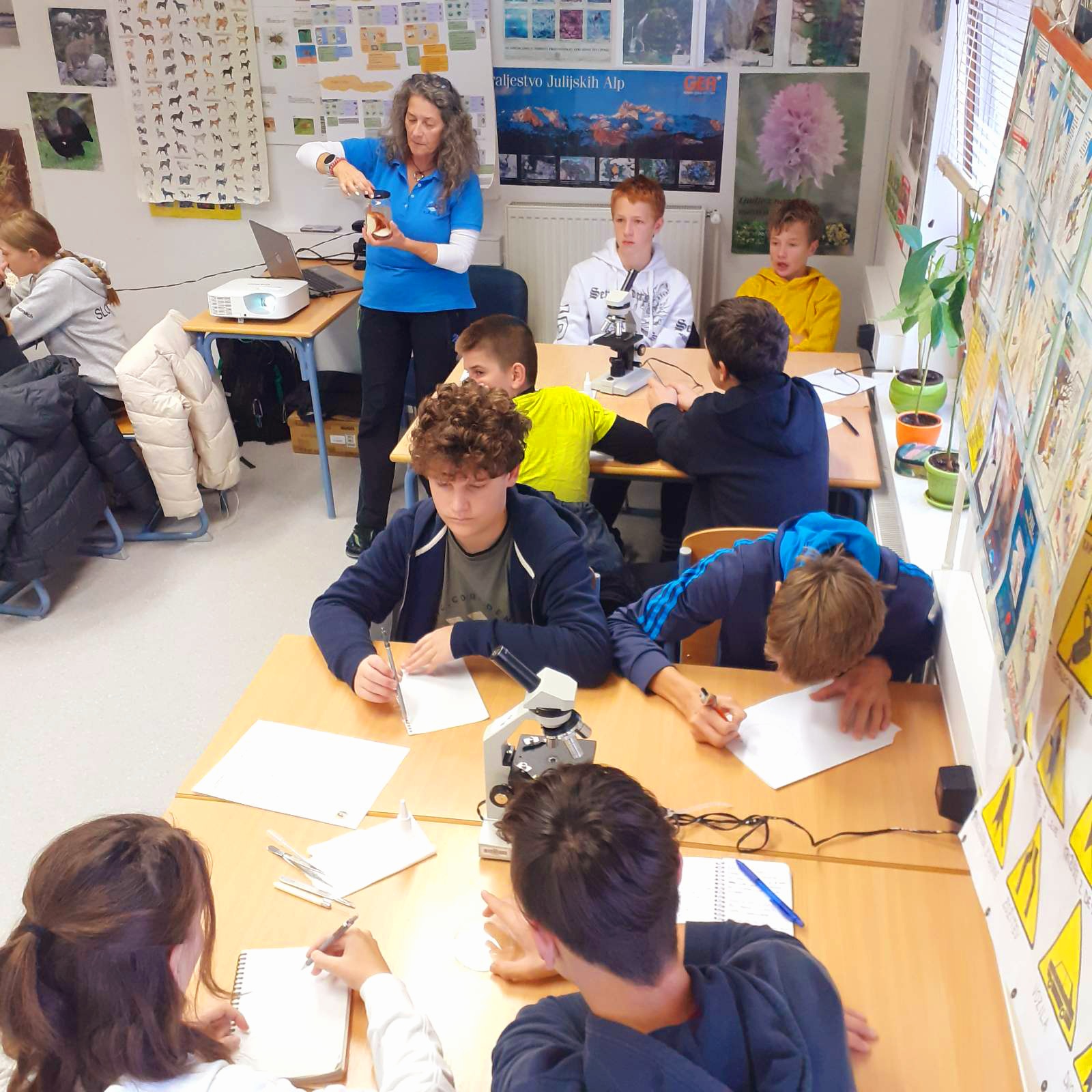 Tudi sredino jutro je napovedalo jasen dan. Učne vsebine so bile naravoslovno in družboslovno obarvane. Učenci so mikroskopirali in izvajali terensko delo v bližnjem gozdu ter ob jezeru Jasna.