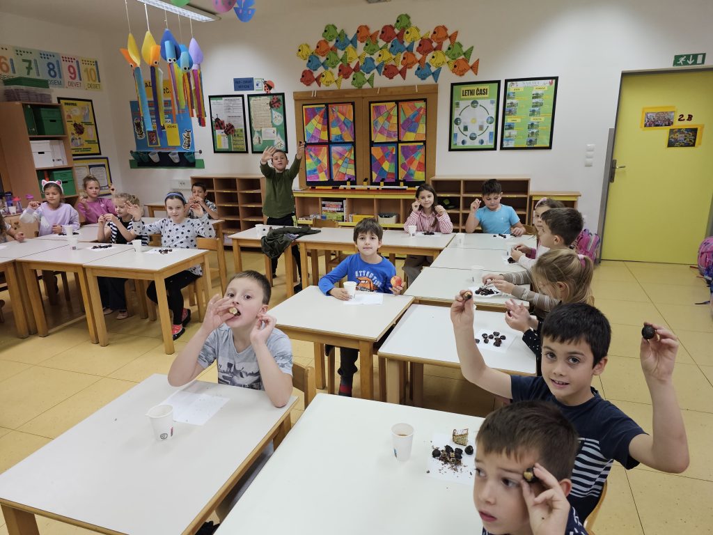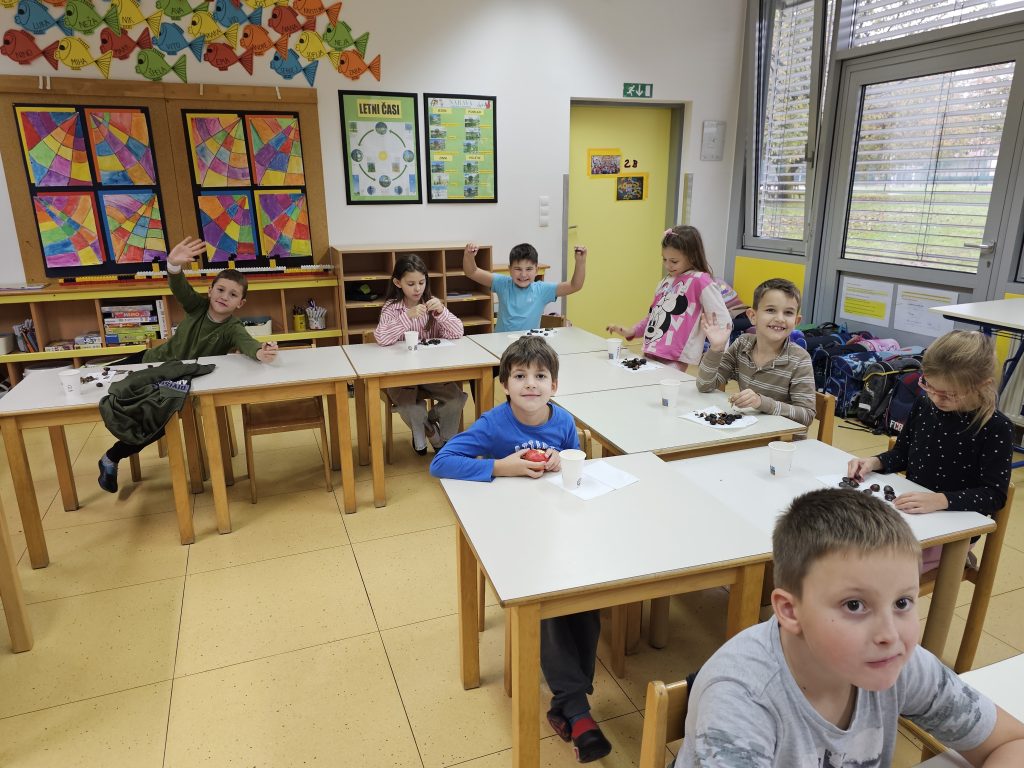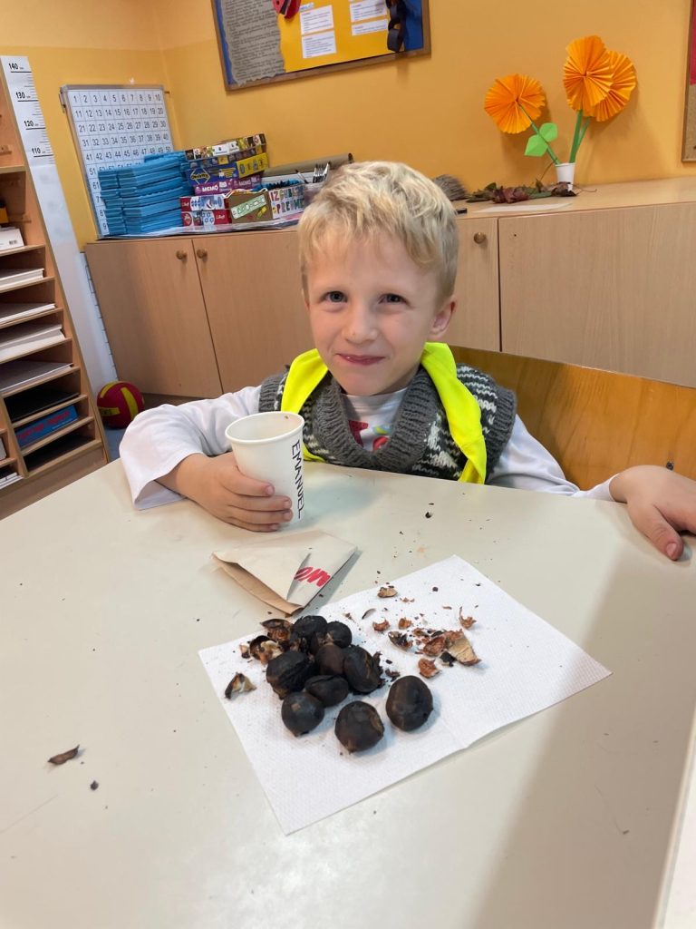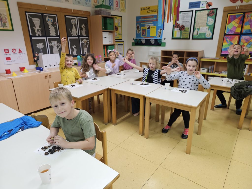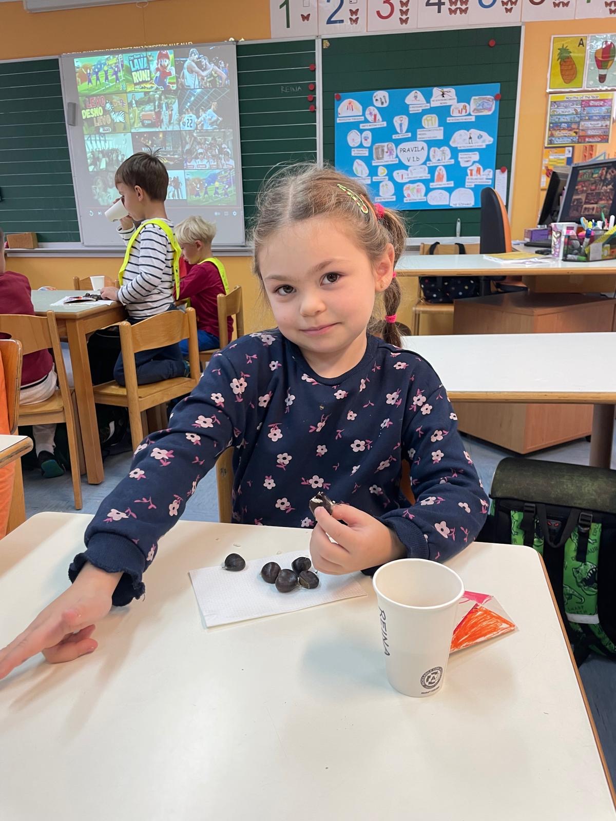 V petek, 18. 10. 2024, smo v 1. triletju v oddelkih podaljšanega bivanja imeli kostanjev piknik. Čeprav nam vreme ni bilo najbolj naklonjeno in smo morali dogodek preseliti v razrede, to ni pokvarilo našega razpoloženja.