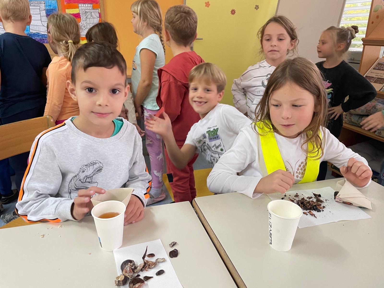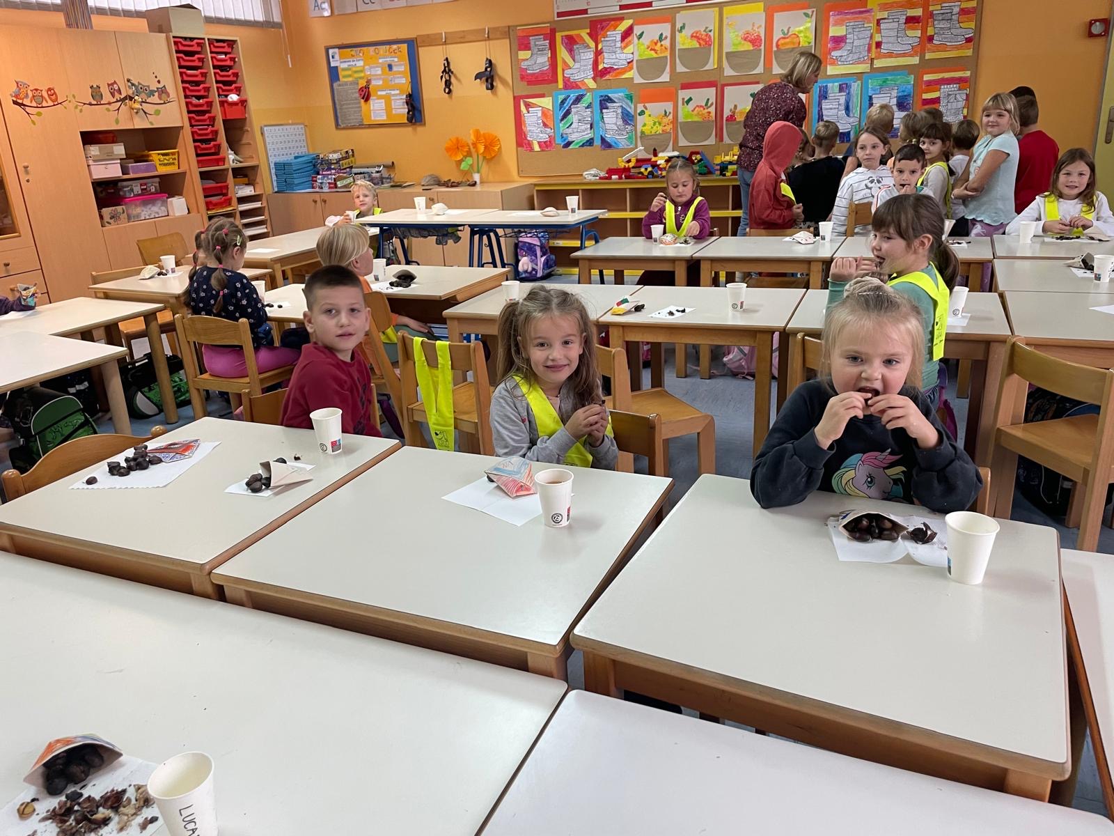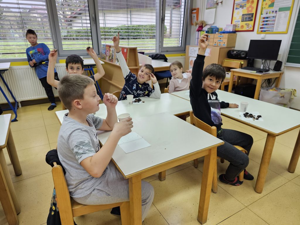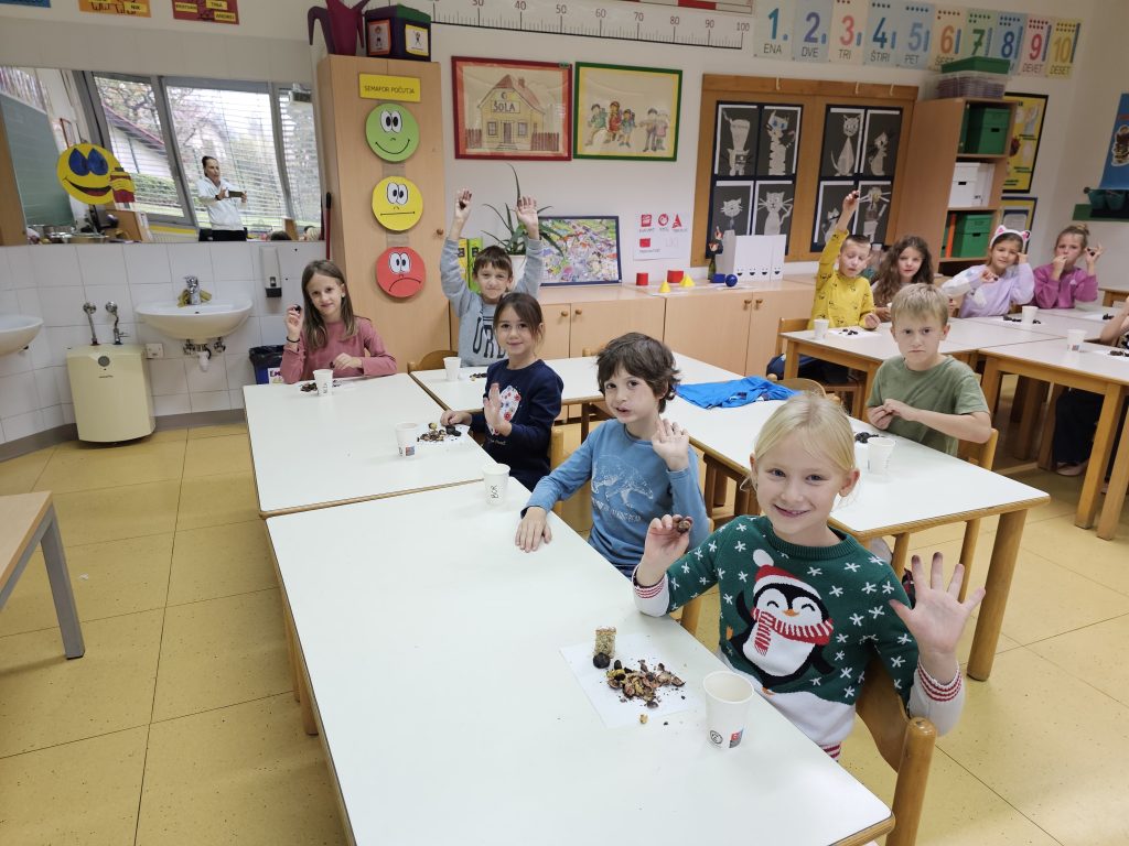 V petek, 18. 10. 2024, smo v 1. triletju v oddelkih podaljšanega bivanja imeli kostanjev piknik. Čeprav nam vreme ni bilo najbolj naklonjeno in smo morali dogodek preseliti v razrede, to ni pokvarilo našega razpoloženja.