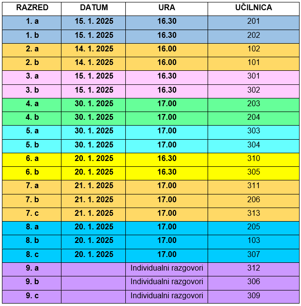 TABELA RODITELJSKIH SESTANKOV – POŠ TEPANJE