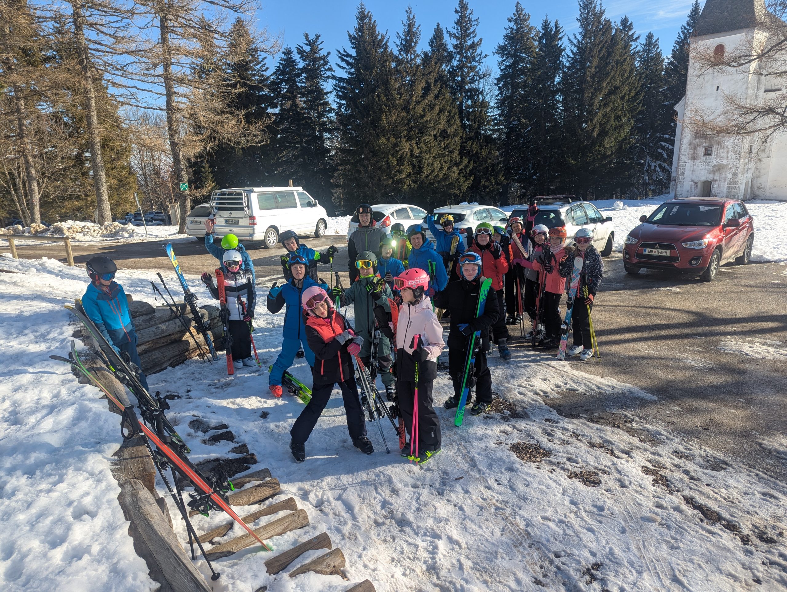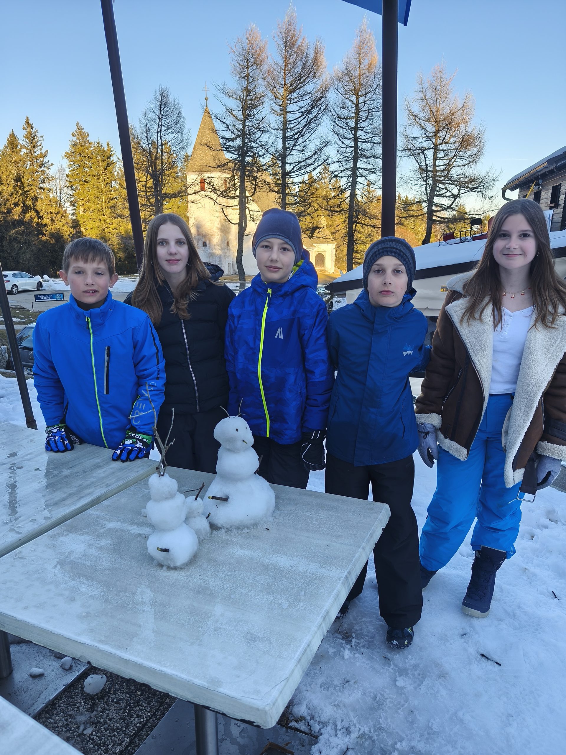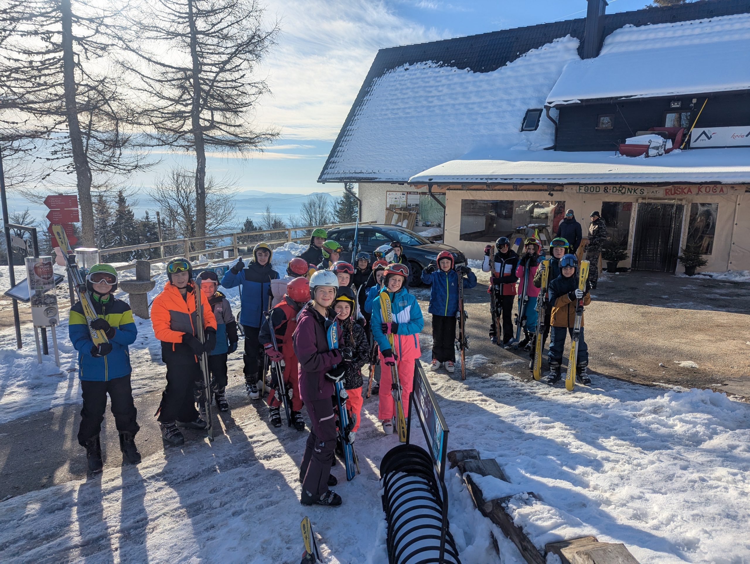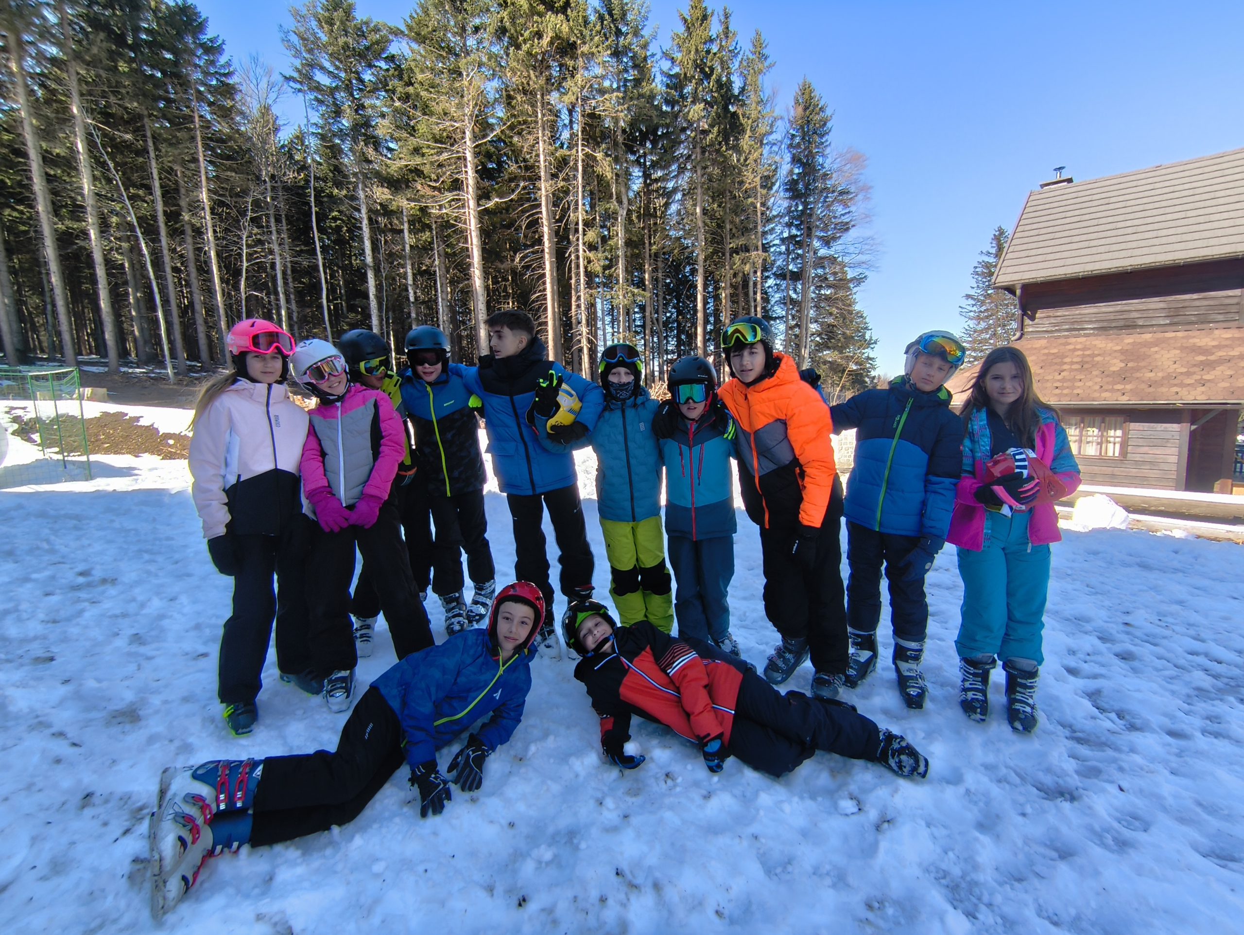 Tudi danes nas je pričakalo zasneženo sončno jutro. Po pestrem včerajšnjem popoldanskem programu smo se malce utrujeni, a polni pričakovanj podali na dopoldanski smučarski trening.