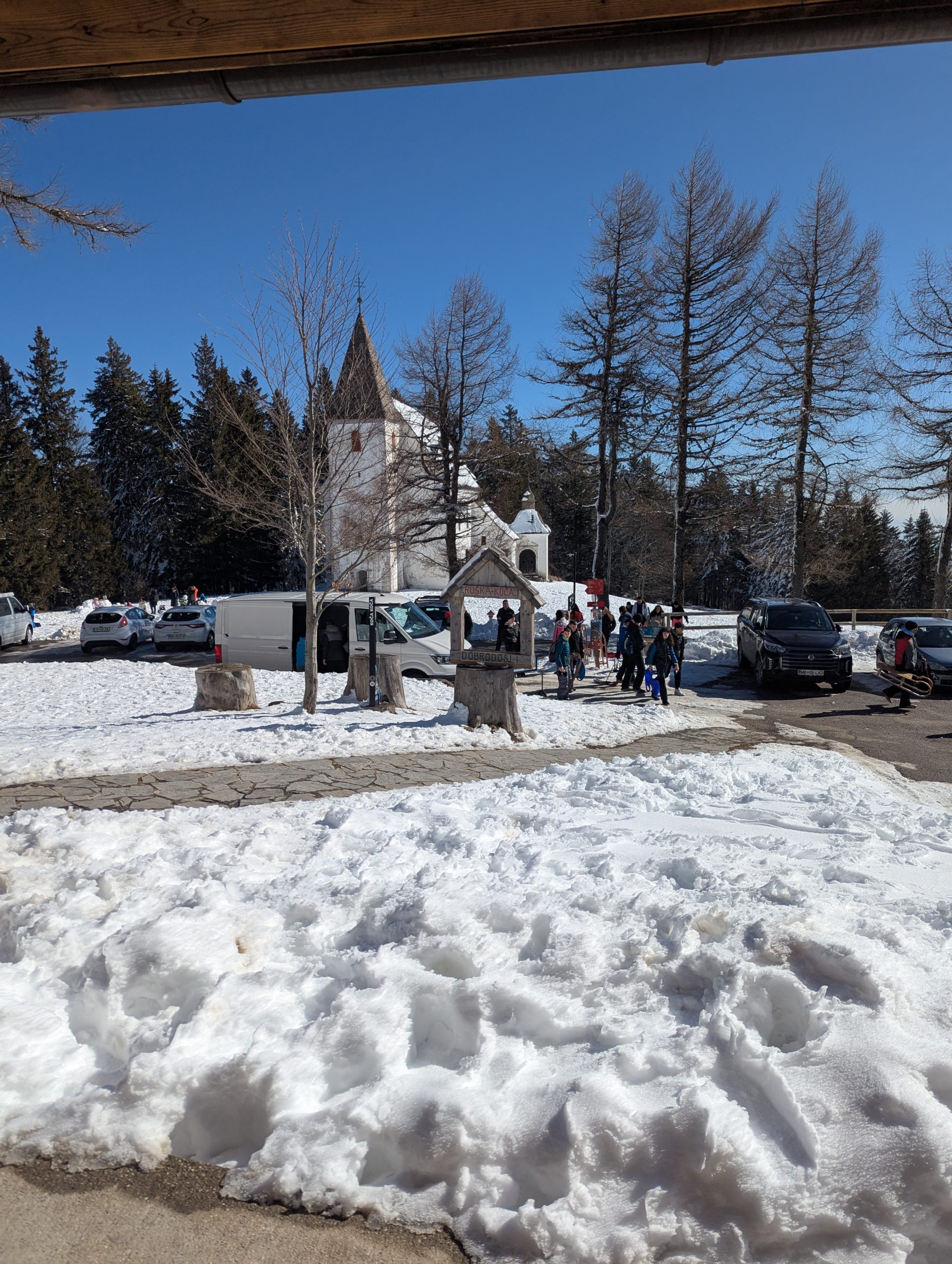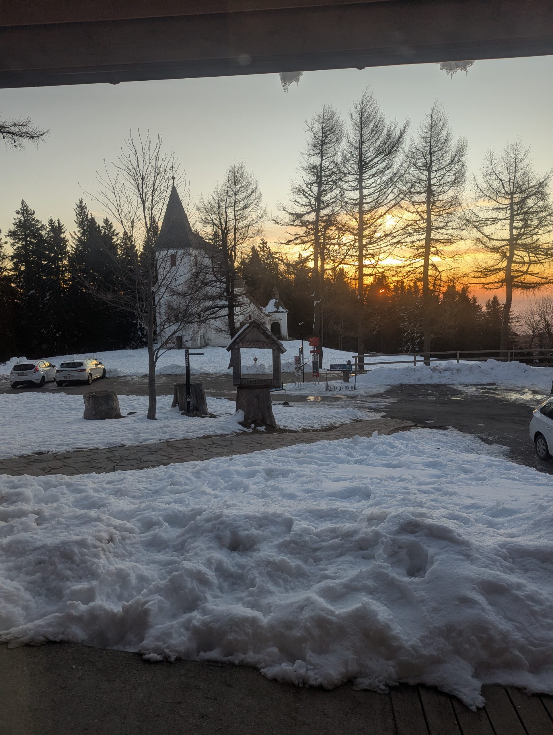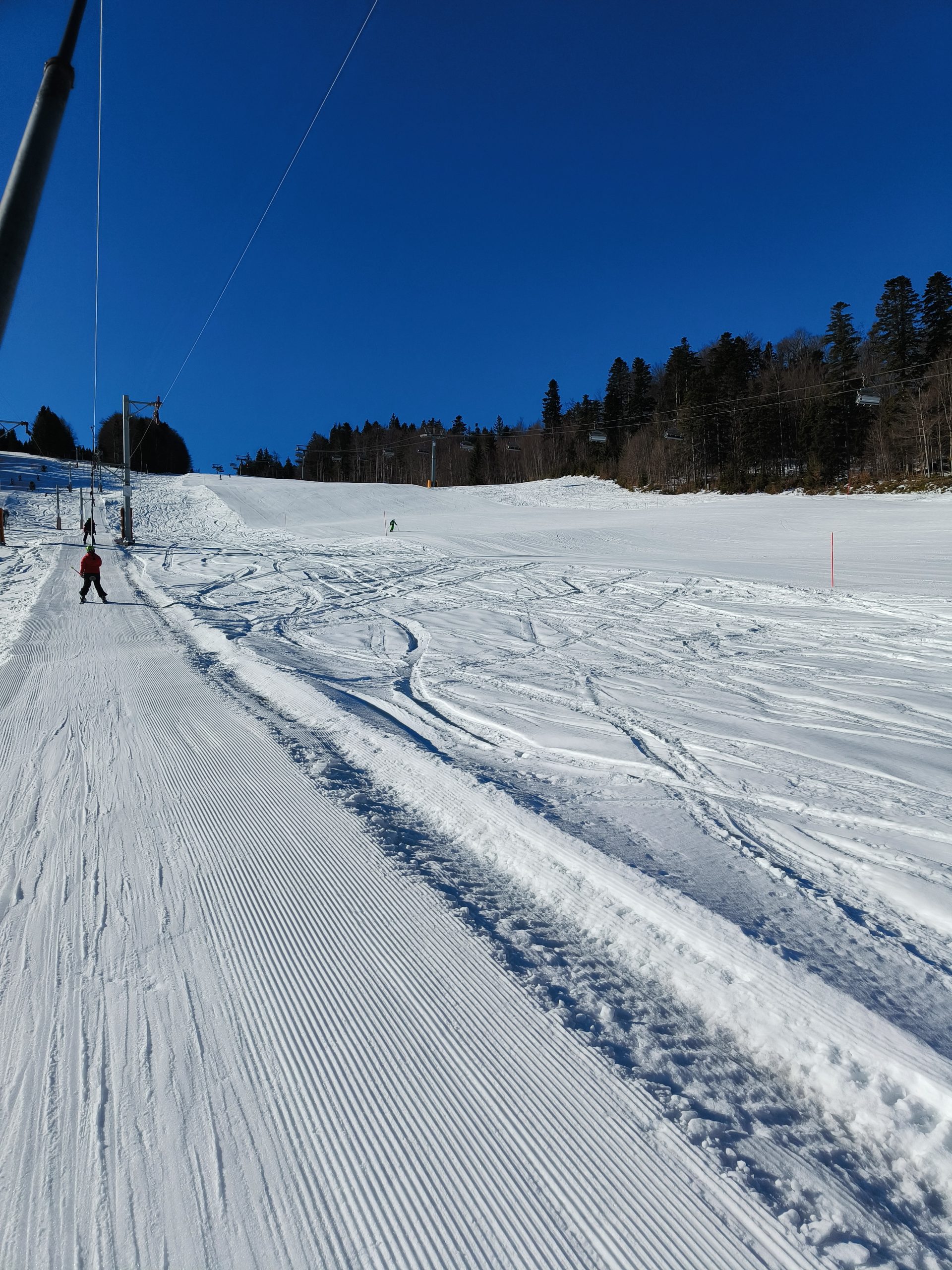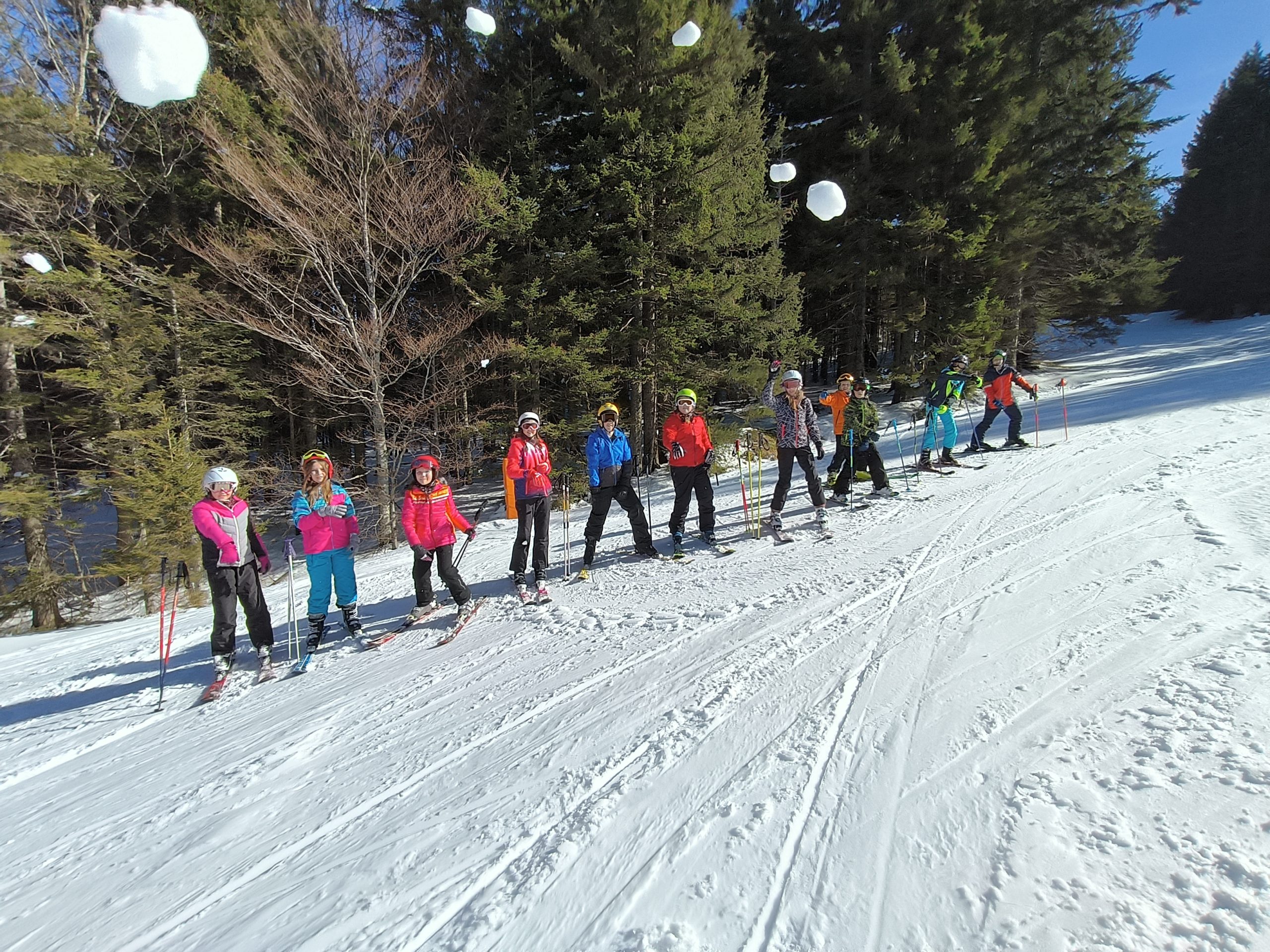 Tudi danes nas je pričakalo zasneženo sončno jutro. Po pestrem včerajšnjem popoldanskem programu smo se malce utrujeni, a polni pričakovanj podali na dopoldanski smučarski trening.