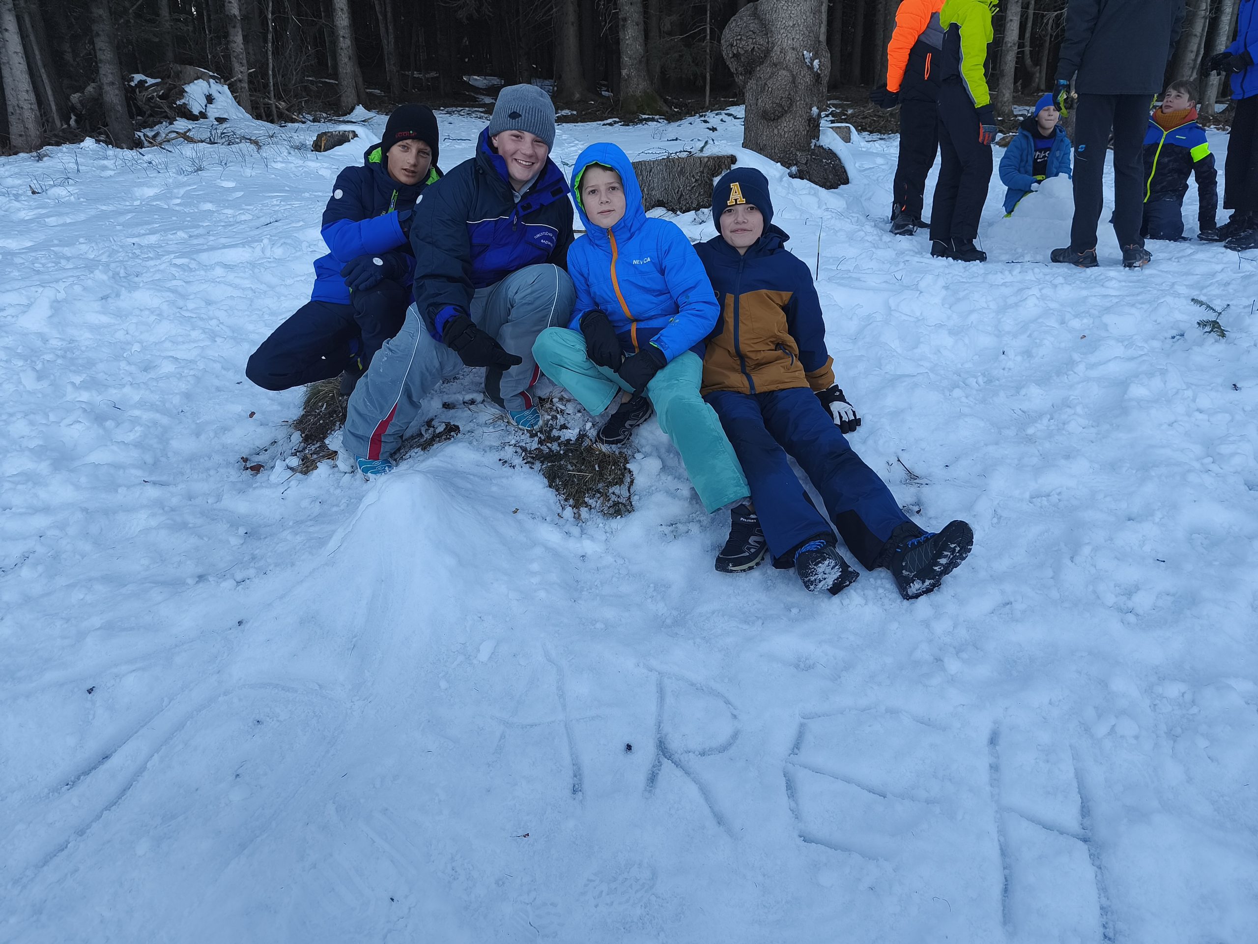 Šestošolci se javljamo iz šole v naravi z Areha. Po mirni prvi noči smo se prebudili v pravo zimsko idilo in se z veliko vneme in dobre volje odpravljamo na današnjo prvo smuko. Popoldan pa nas čaka pustno rajanje.