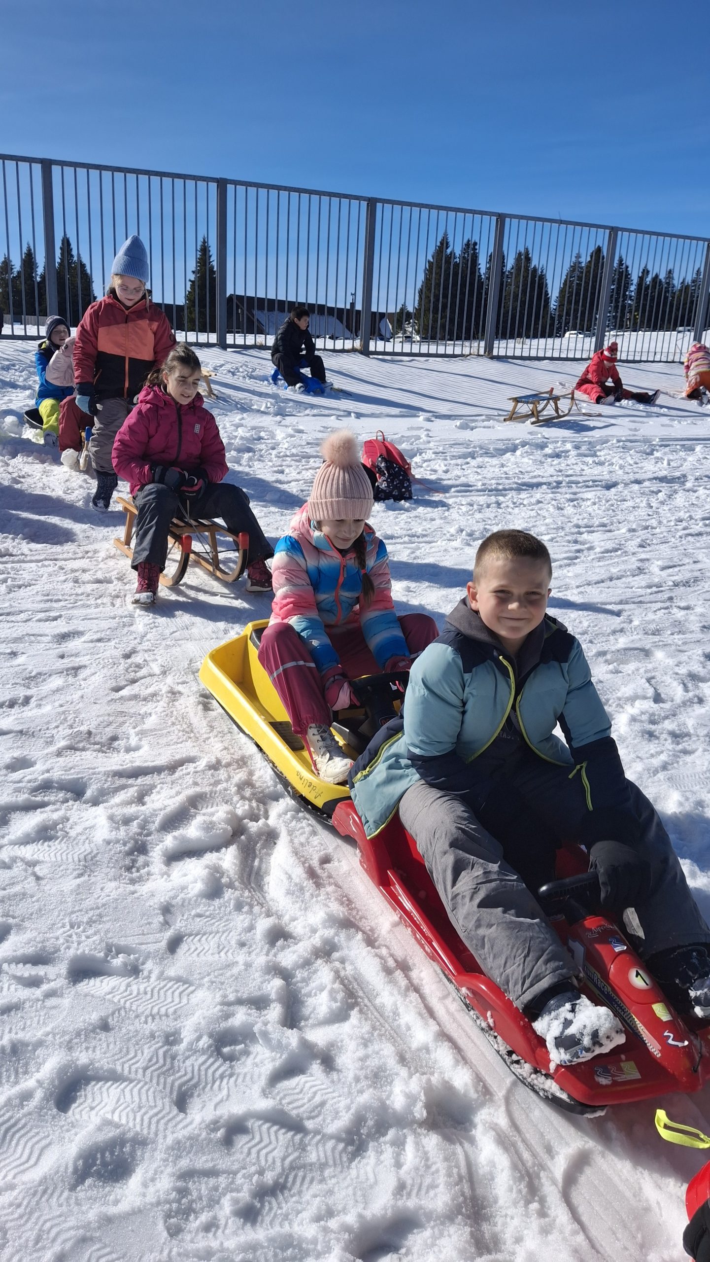 Zimski športni dan na Rogli je bil poln zabave in smeha, saj smo se učitelji in učenci četrtih razredov podali na sankališče. Otroci so uživali v hitrem spuščanju po snegu in skupaj z učitelji ustvarili prijetno vzdušje. Vse je bilo obarvano z zimskim soncem, ki je dan naredilo še bolj poseben in čaroben. Po številnih vožnjah so učenci uživali tudi v skupinskih igrah na snegu ter se naužili morda še zadnjih letošnjih snežnih radosti.