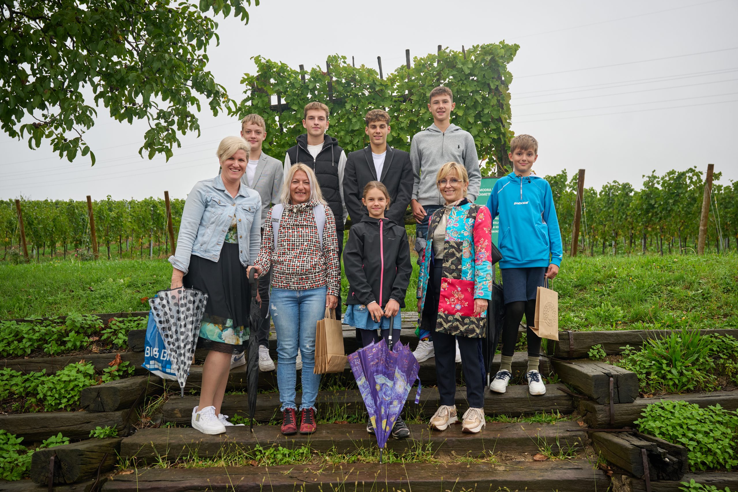 V sredo, 24. 9. 2025, je v osrčju vinorodnih Škalc potekala simbolična trgatev potomke najstarejše trte. Povabilu na dogodek so se odzvali tudi učenci naše šole, ki so za ta namen pripravili kratek kulturni program. Zbrane na dogodku je več kot navdušilo ubrano petje fantovske komorne zasedbe, v sestavi Benjamin Bečić, Gal Gaber, Benjamin Podplatan, Miha Rečnik, pod vodstvom in ob spremljavi klaviatur Janje Stampfer. S kratkim skečem o srečanju med zmajem in Marjetico pa sta nasmejala Jaka Beškovnik in Manca Onič, pod mentorstvom Tine Vahter. Obiskovalci so nastop nagradili z bučnim aplavzom, na svoje učence pa je bila zelo ponosna tudi ravnateljica, mag. Nevenka Brdnik.