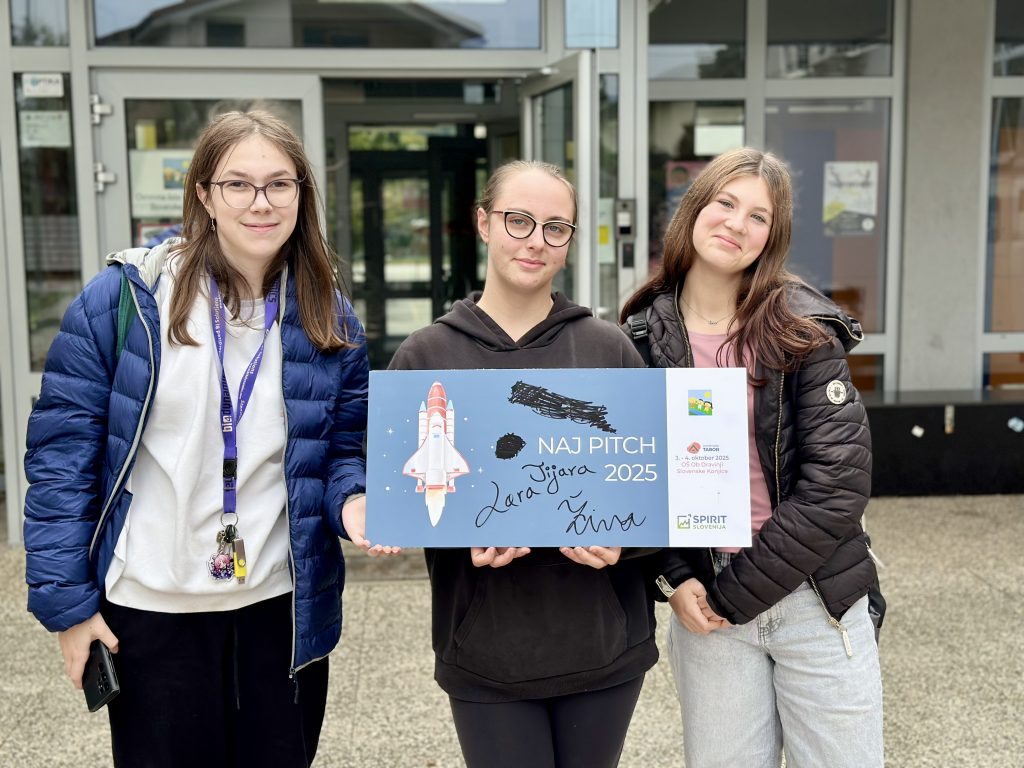 Nagrado za NAJ PITCH, naj predstavitev so prejele Lara, Živa in Tijara, ki so oblikovale pripomoček z magnetki in risalnimi žebljički za lažje shranjevanje papirnatih opomnikov.
