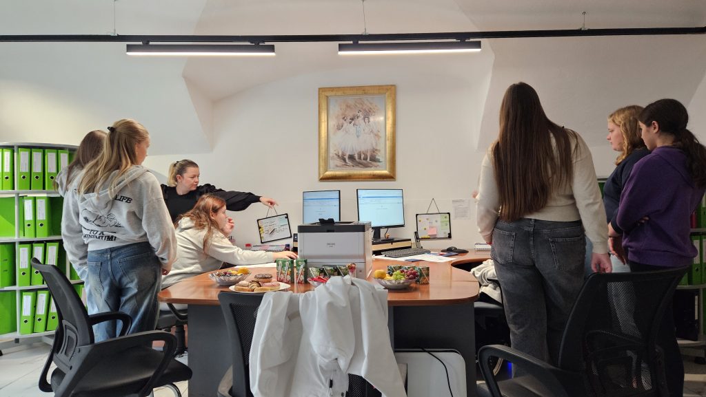 V računovodskem servisu MAT so nam predstavili, kako izgleda poklic računovodje oziroma s čim vse se pravzaprav ukvarjajo. Ker imajo dela čez glavo, so nas v slednjega kar nemudoma vključili. Tako smo morali analizirati račun (datum, vsota, valuta itd.), spoznali smo segment plač in davkov, v računalnik smo vnašali pomembne podatke, pri čemer smo morali biti zares zelo pozorni in natančni. Ker nas je tako delo izčrpalo, so nam postregli s slaščicami.