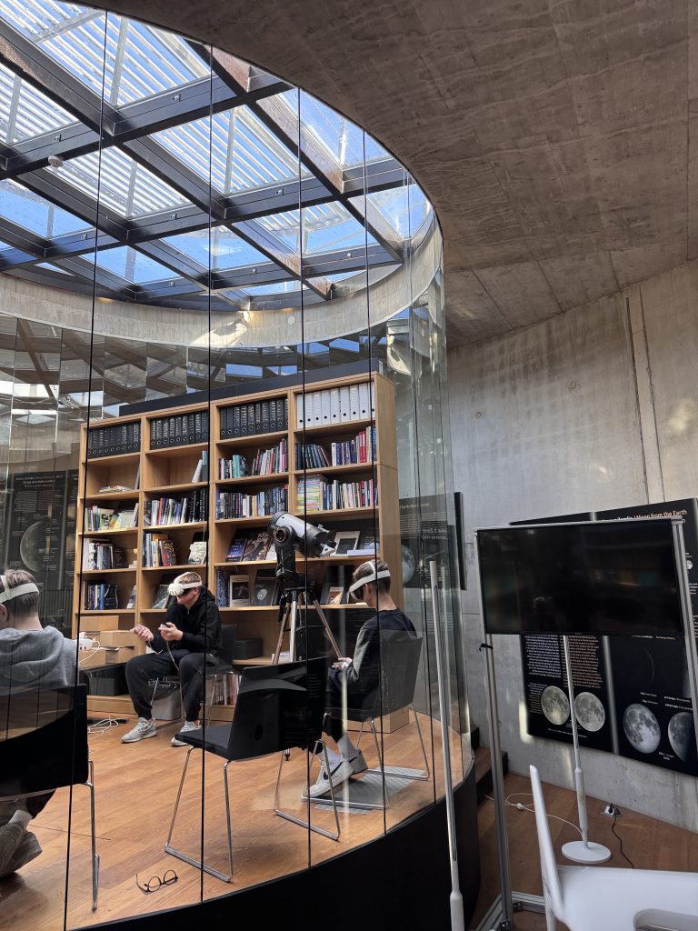 Zatem smo se razdelili v dve skupini, pri čemer je ena od skupin odšla na voden ogled okrog centra, z zanimivimi grafi in maketami so nam predstavili glavne vesoljske podvige ter pomen astronomije za Slovenijo, druga skupina pa je medtem preizkušala razne simulacije. Po 45 minutah sta se skupini zamenjali. Za piko na i izredno zanimivega dne so poskrbela VR očala, ki so nas, ko smo si jih nataknili, ponesla na mednarodno vesoljsko postajo, kjer smo opravljali razne misije in raziskovali prostor, v katerem smo se znašli.