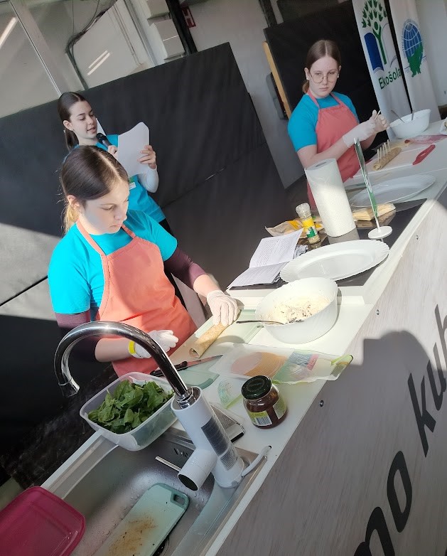 Naše učenke so v demo kuhinji pripravile zdravo malico – tortilje s tuno in sredozemsko navdihnjene piščančje zvitke.