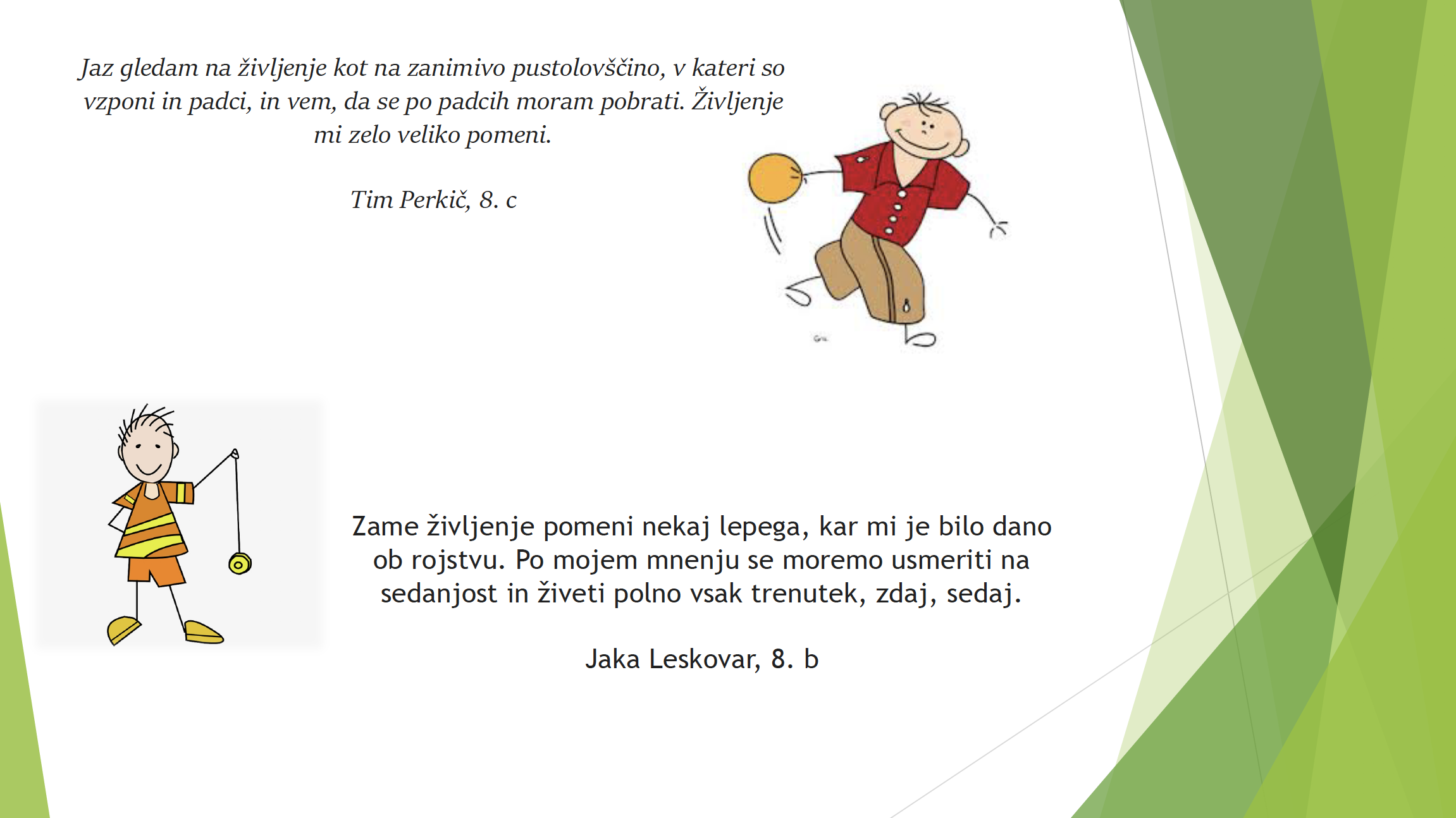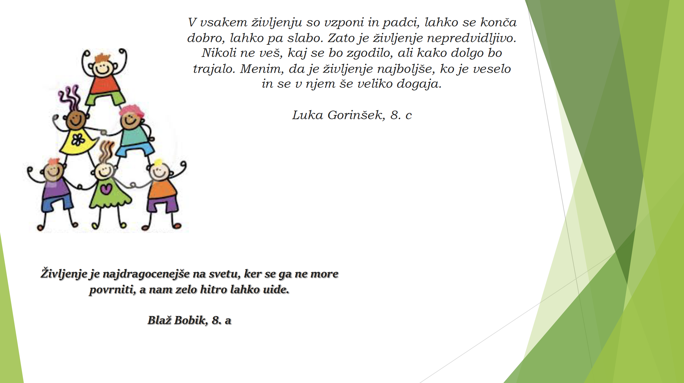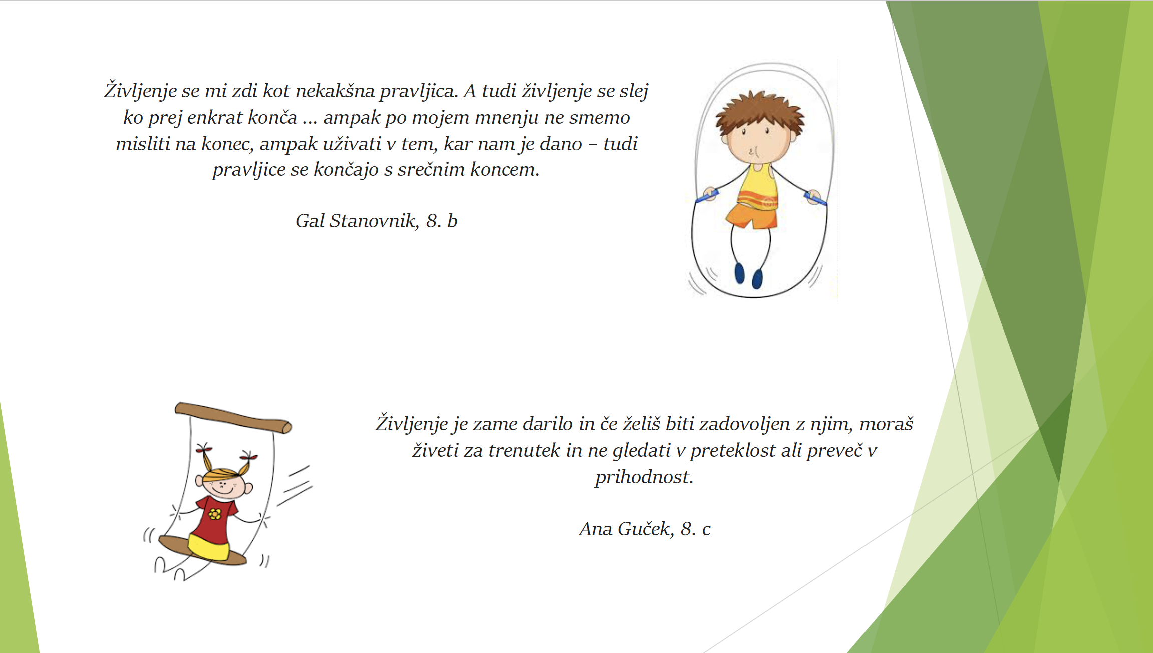 - Učenci 7. razreda pa so poskrbeli, da nam v teh dneh zagotovo ne bo zmanjkalo pozitivnih misli. Izdelujejo kozarčke s pozitivnimi mislimi v nemščini.
