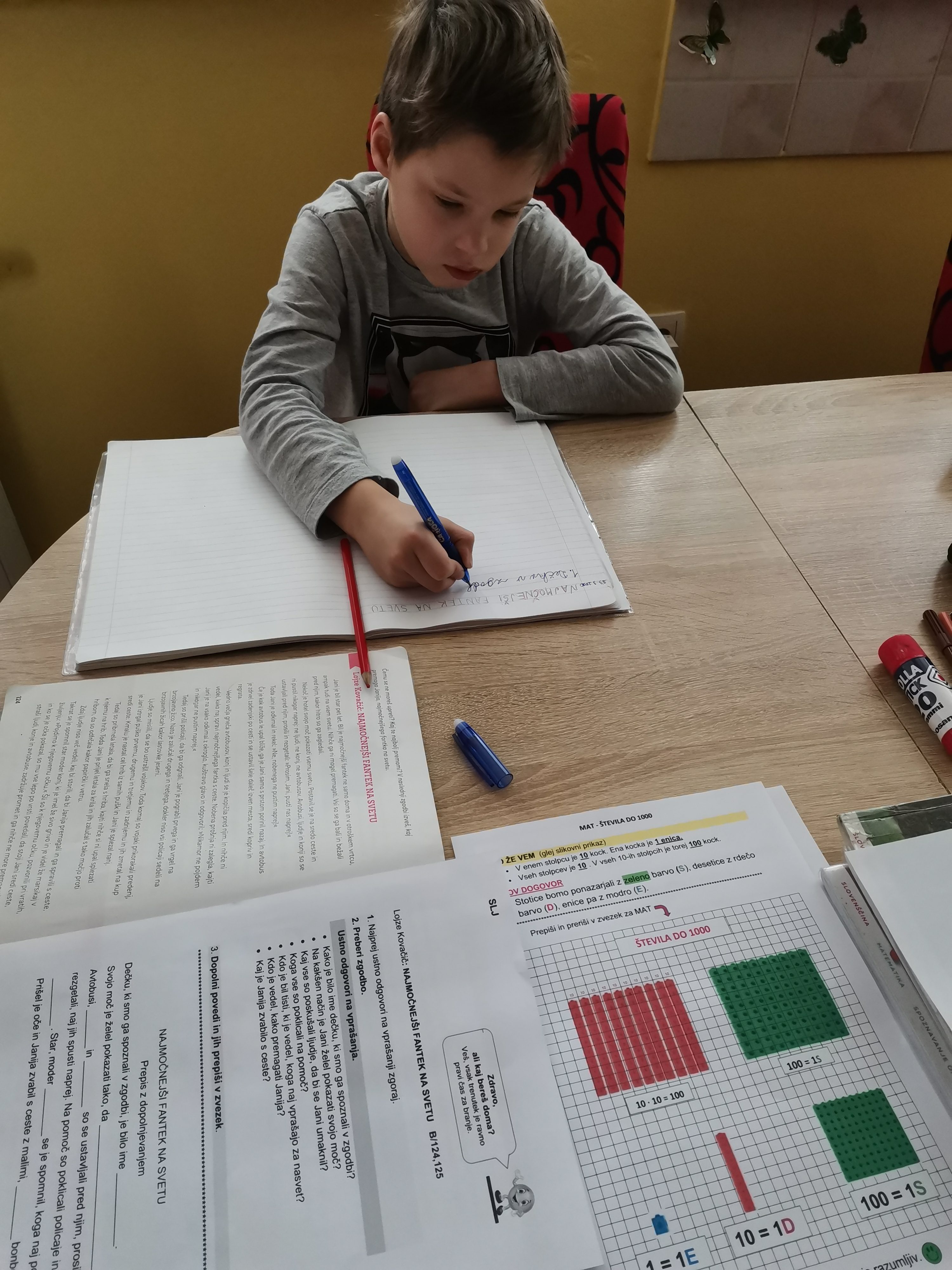 - ANDREJ iz 1. b-razreda pravi, da mu je učenje doma všeč, vendar pogreša učiteljice in sošolce.