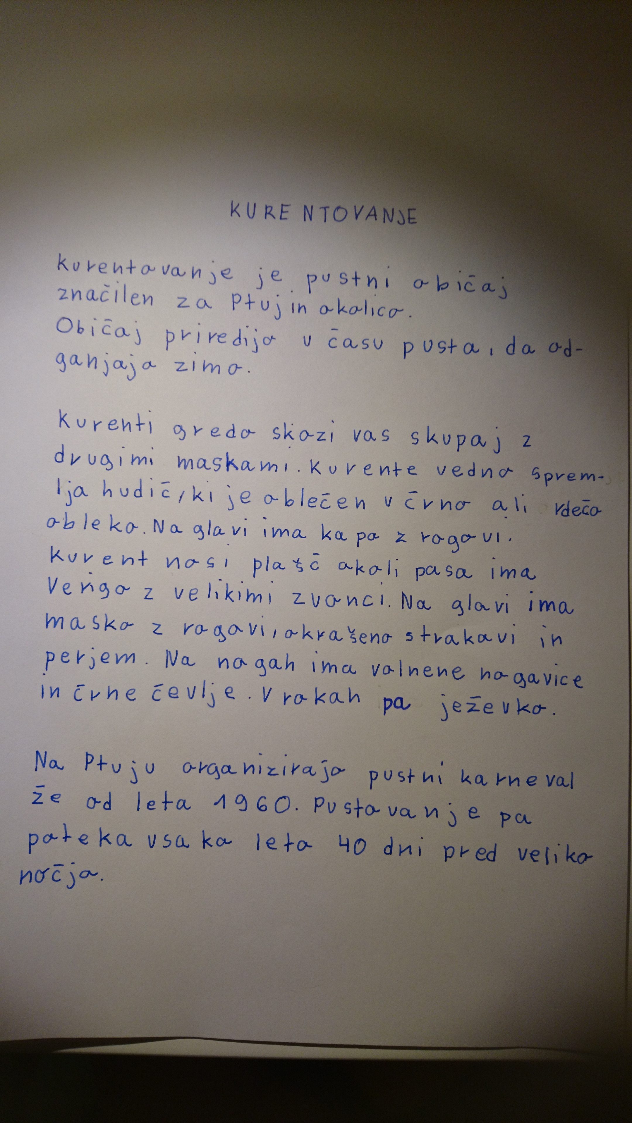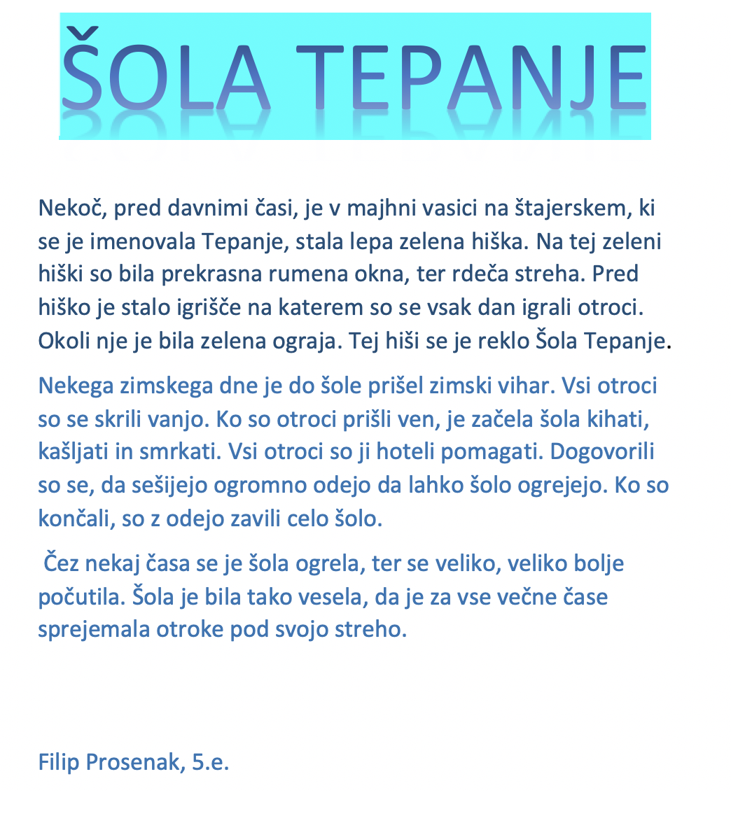 - Pravljica Anje Pevnik iz 2.c – poustavarjanje na temo Bela kača s kronico