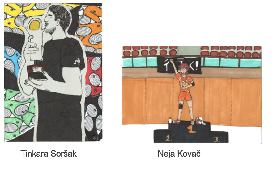 Na likovnem natečaju so sodelovali učenci iz petih držav, na sam vrh pa sta se v kategoriji od 13 do 16 let povzpeli likovni deli Tinkare Soršak iz 8. a (1. mesto) in Neje Kovač iz 9. b razreda (2. mesto) pod vodstvom mentorice Jerneje Menzinger.