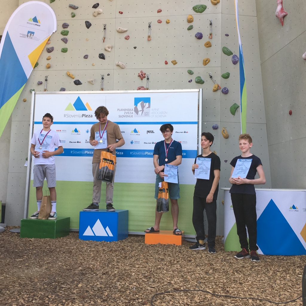 V soboto, 5. junija 2021, je v Plezalnem centru Ljubljana potekalo državno prvenstvo v težavnostnem plezanju. Plezalci vseh kategorij, od cicibanov do članov, so preizkušali svoje znanje, moč in ostale sposobnosti na 15 metrov visoki zunanji steni. V kategoriji starejši dečki se je pomeril tudi učenec naše šole – Janej Kotar Tominšek iz 9. c razreda. V konkurenci 17 fantov je dosegel odlično tretje mesto.