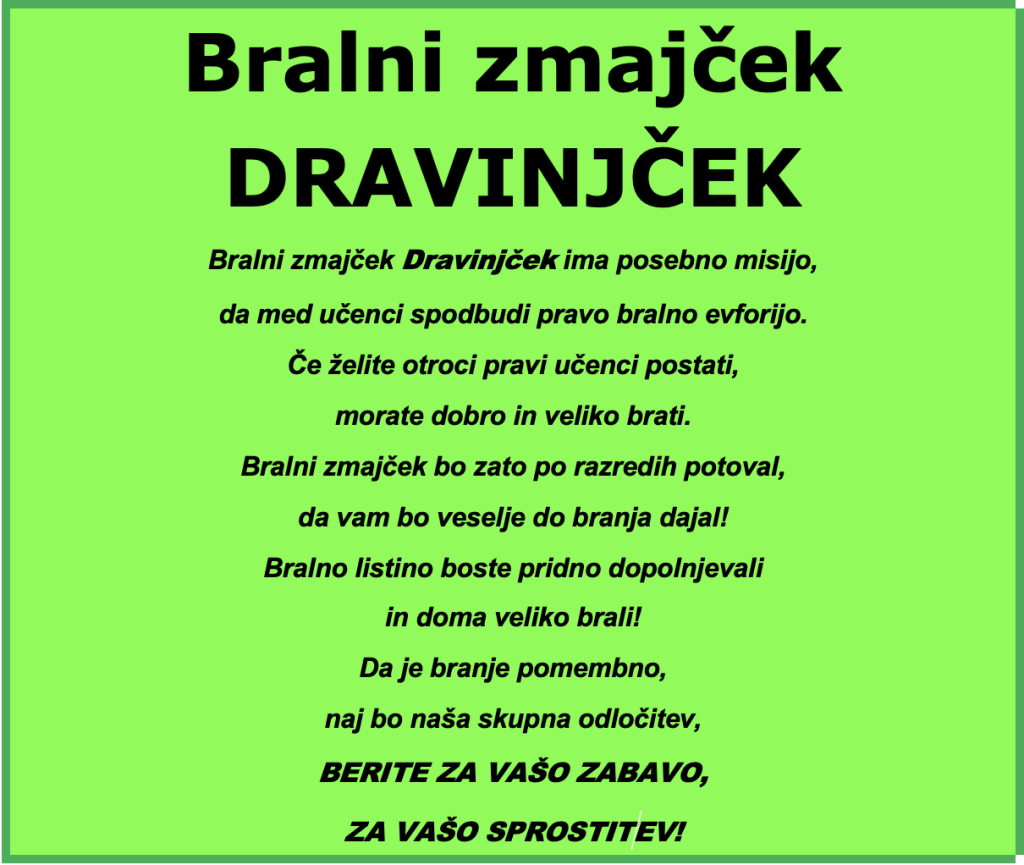 BRALNI ZMAJČEK DRAVINJČEK ODHAJA NA BRALNO POTOVANJE