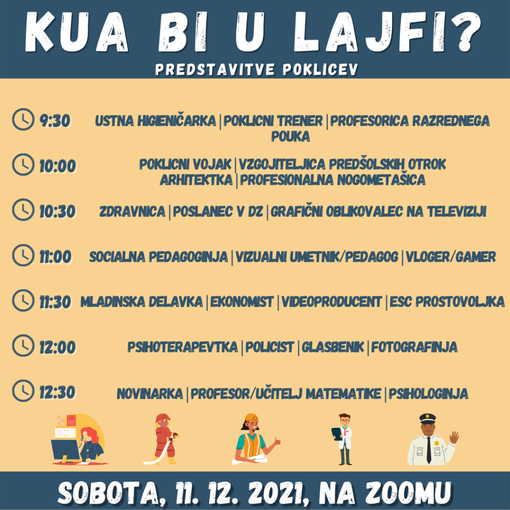 Mladinski center Zagorje v soboto, 11. 12. 2021, med 9.30 in 13.00 uro pripravlja spletni dogodek »Kua bi u lajfi?« – predstavitve poklicev za mladostnike in mlade po metodi Žive knjižnice.