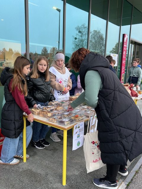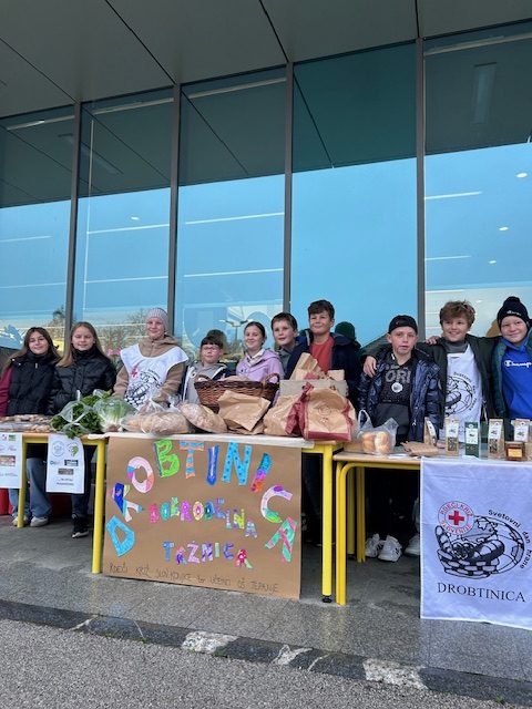 V soboto, 18.10.2025 od 7.30 ure, je pred trgovino Merkator v Tepanju, potekala dobrodelna tržnica Drobtinica, ki so jo organizirali člani Rdečega križa Slov. Konjice v sodelovanju z učenci 4. in 5. razredov POŠ Tepanje. Na tržnici so lahko obiskovalci izbirali med različnimi dobrotami, predvsem pecivom in keksi, ki so jih spekli in pripravili učenci naše šole ter drugimi pekovskimi in neživilskimi izdelki drugih donatorjev.