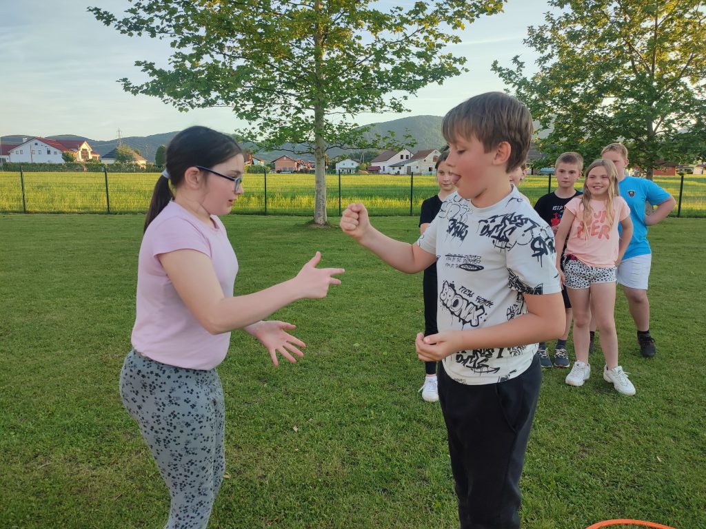 V torek, 20. 6. 2023, smo imeli na podružnici Tepanje športni dan. Vreme je bilo vroče in sončno, kot nalašč za vodne igre. Najprej smo poskrbeli za ustrezno zaščito pred soncem, nato pa smo učence razdelili v 5 skupin ter začeli z igrami. Preizkusili so se v podajanju odprte plastenke, podajanju gobe, metanju vodnih balonov, prenašanju vode s palico in teku z lončkom na glavi. Učenci so uživali in se zabavali.