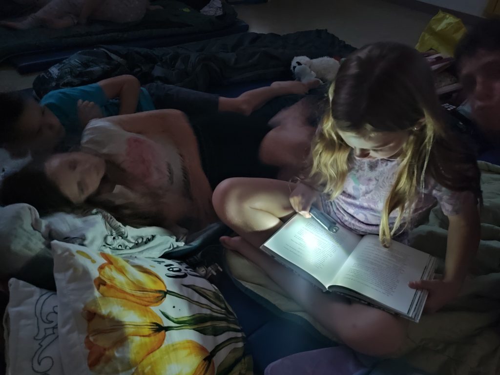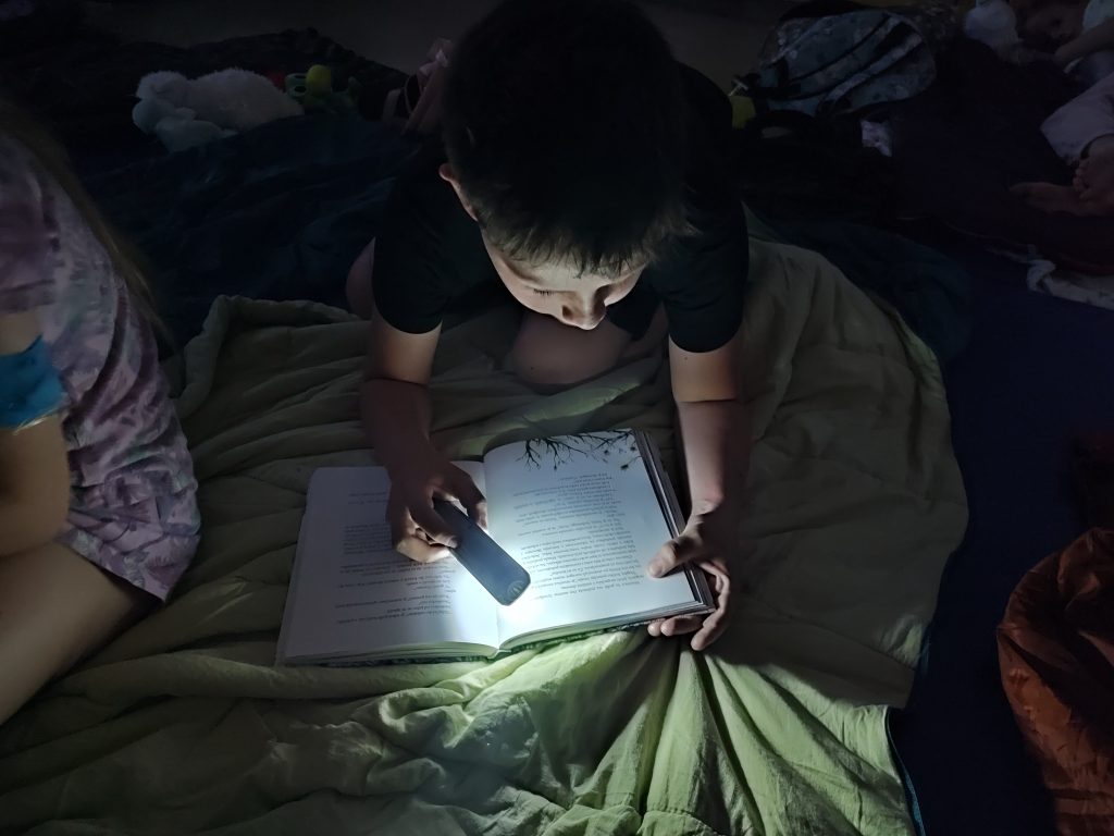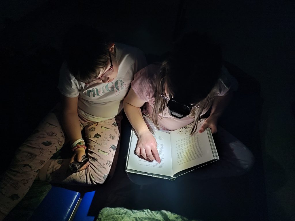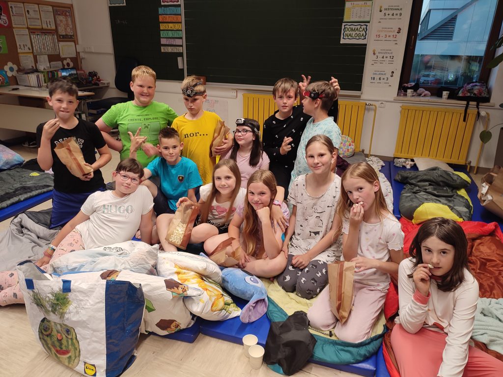 Najprej smo se družili ob zabavnih igrah na šolskem igrišču, nato pa smo si privoščili slastne pice v gostišču Endi. Sledila je priprava ležišč, večerno branje, ogled filma ter prijetno klepetanje in druženje dolgo v noč.